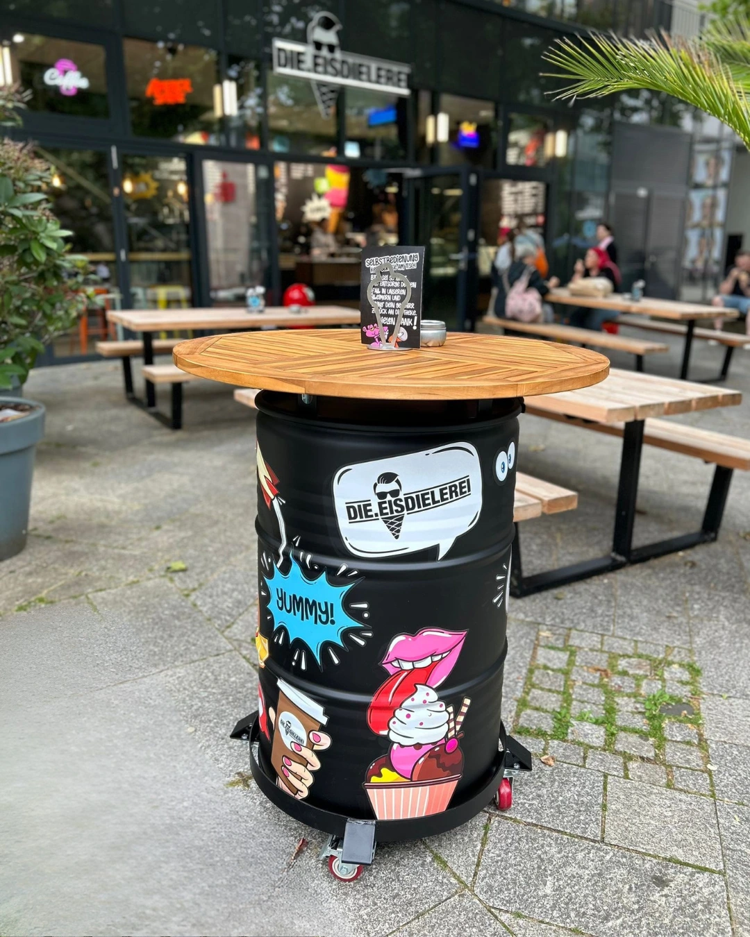 Von recycelten Fässern zu echten Blickfängen – Hier zeigen wir Dir, welche einzigartigen Stehtische bereits für unsere Kunden entstanden sind.